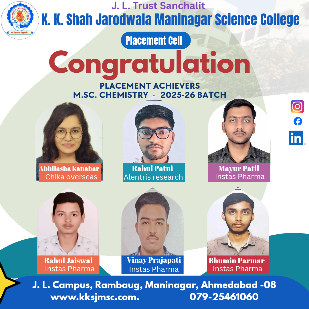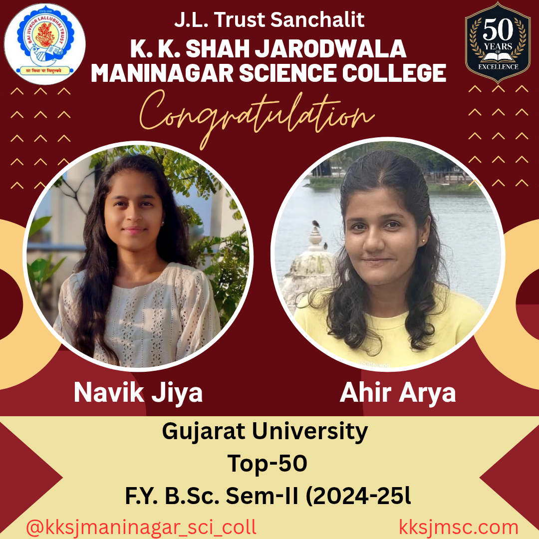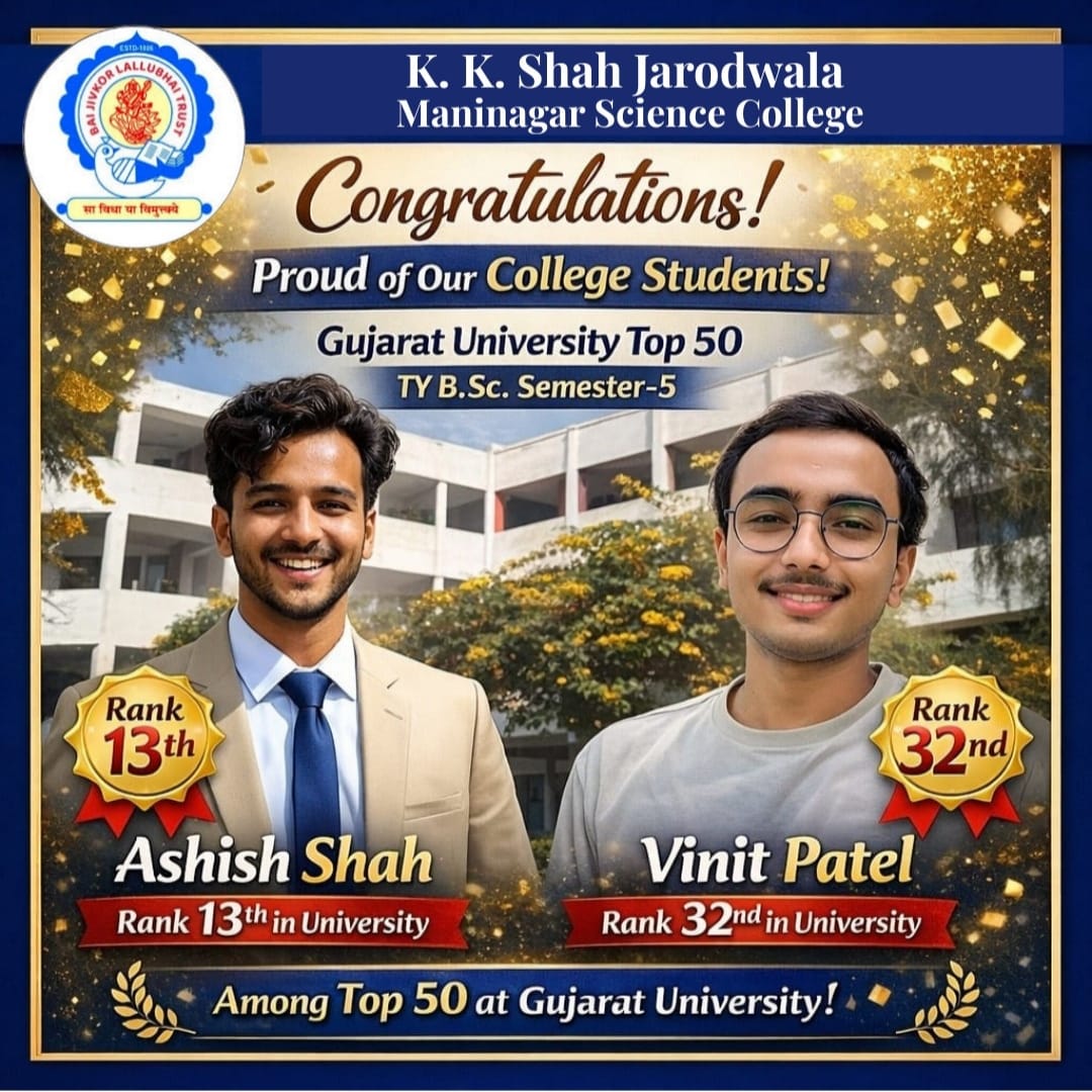 K K Shah Jarodwala Maninagar Science College, Ahmedabad is a reputed institute imparting higher education at under graduate(B.Sc.), post graduate(M.Sc.) and Ph.D levels. The college is affiliated with Gujarat University, Ahmedabad. The college is with Grant-in-aid status. The college is given 2f and 12(B) status by University Grants Commission. Bai Jivkor Lallubhai Trust currently runs this college since June, 1997. Formerly, the college was run by Vidya Samaj (Regd. Trust) as “Maninagar Science College” from 1975 to 1997 at Shri. B. R. Somani High School, Shah-e-Alam, Ahmedabad.