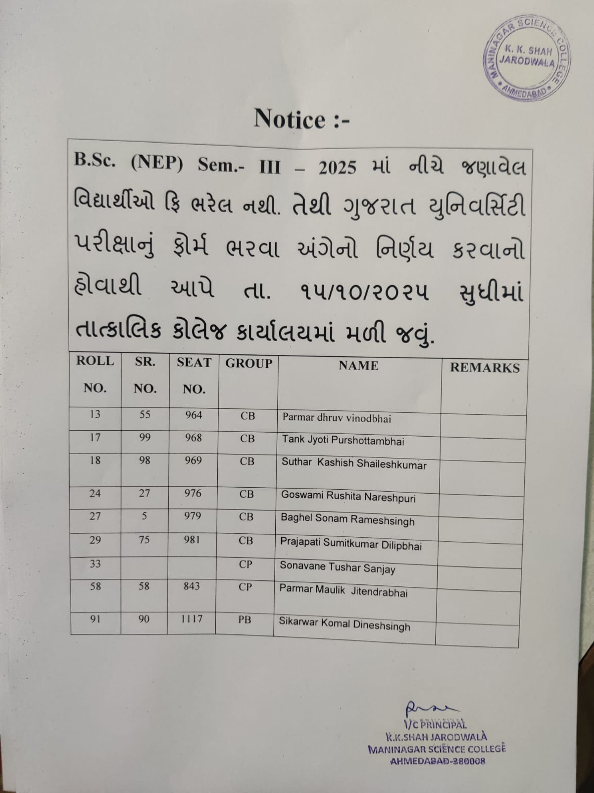 Notice for Fee Payment B.Sc. Sem-III (NEP)