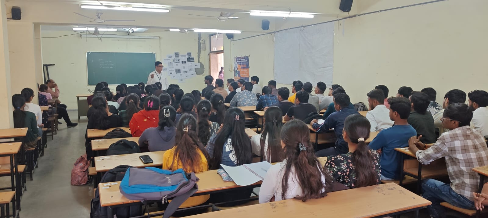 The session was addressed by Principal Dr. R. N. Dave, who explained the credit framework, evaluation process, and academic regulations related to the internship program. Dr. H. J. Shah provided detailed guidance on the scope of internships, available opportunities, procedural requirements, documentation, and mentoring support, enabling students to plan and execute their internships effectively.